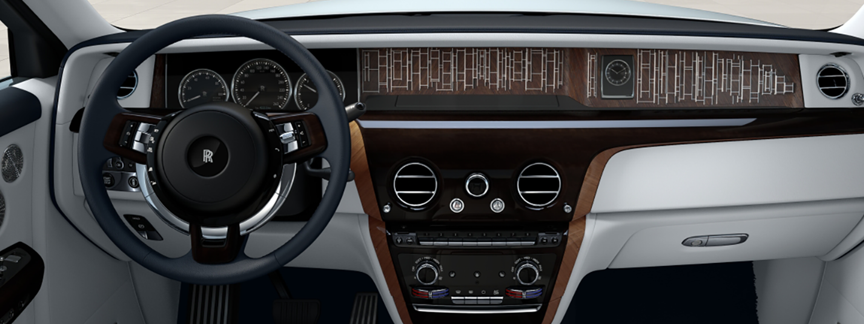 Iconic design elements: The Rolls Royce Phantom features iconic design elements such as the Spirit of Ecstasy hood ornament, coach doors, and a starlight headliner that creates the impression of a starry night sky inside the cabin.